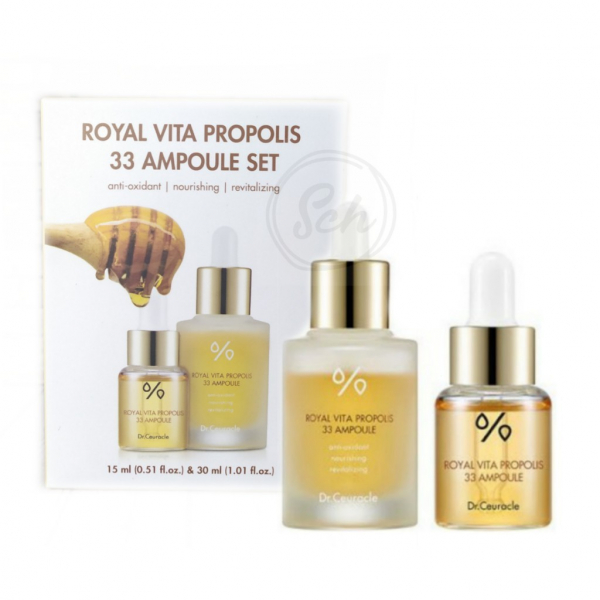 Ампула с экстрактом прополиса и экстрактом маточного молочка обеспечивает коже интенсивное питание, осветляет тусклую кожу, регенерируя ее и придавая сияние.
