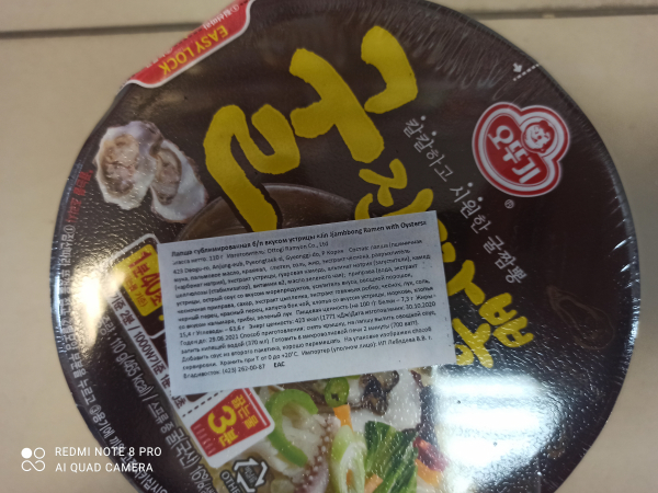 Лапша б/п Jiambbong Ramen со вкусом устрицы 110 гр