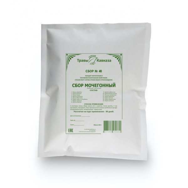 Травяной сбор №40 имеет отличное мочегонное и противовоспалительное действие, восстанавливает функцию мочевого пузыря, значительно улучшает работу сердца.