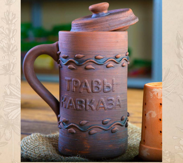 Описание Фирменная кружка «Травы Кавказа» из красной глины